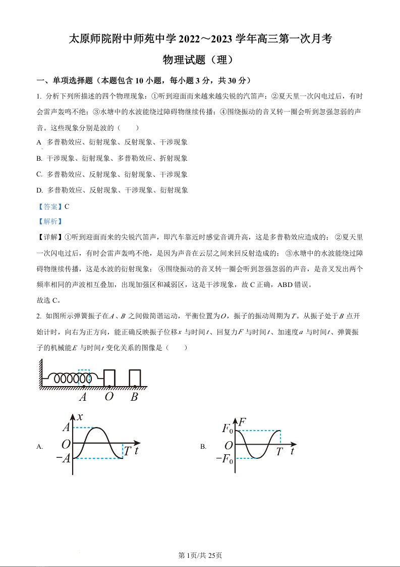 高三物理(解析版)--山西省太原师范学院附属中学23届高三上学期第一次月考
