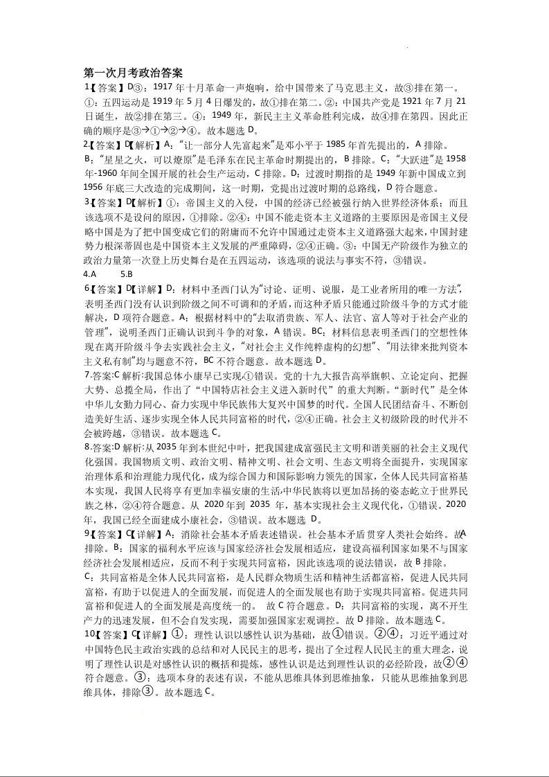 高三政治答案--山西省太原师范学院附属中学23届高三上学期第一次月考