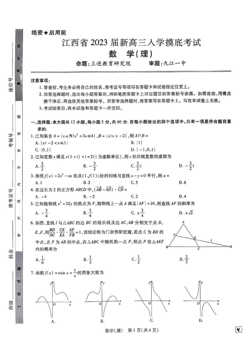 高三理科数学--江西省智慧上进2023新高三上学期入学摸底考试