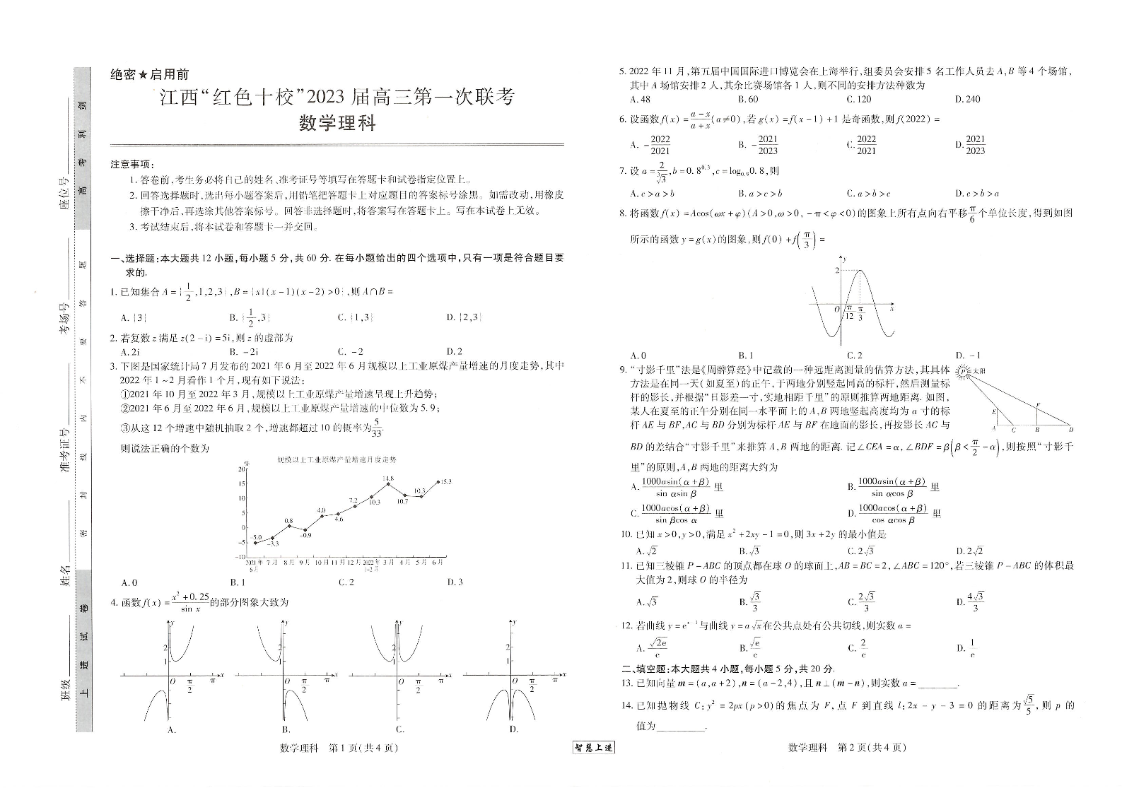 高三理数--江西省“红色十校”2023届高三上学期第一次联考