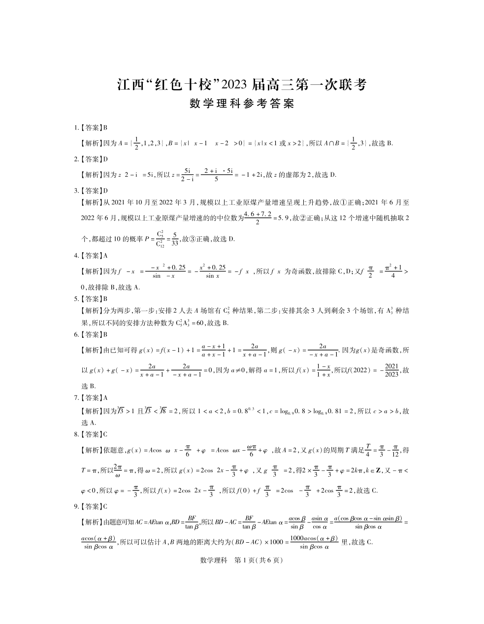 高三理数答案--江西省“红色十校”2023届高三上学期第一次联考