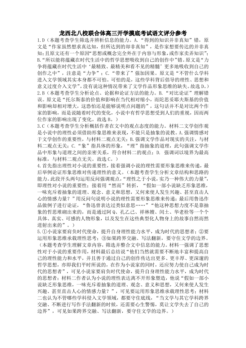 高三语文答案--黑龙江省龙西北八校联合体2023高三上学期开学考
