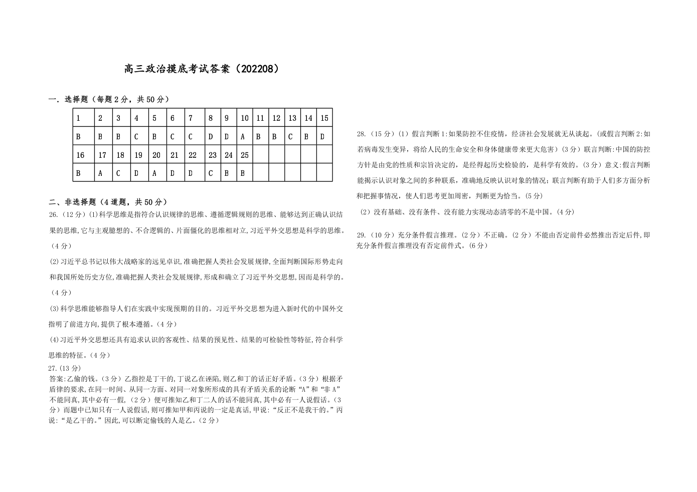 高三政治答案--黑龙江省龙西北八校联合体2023高三上学期开学考