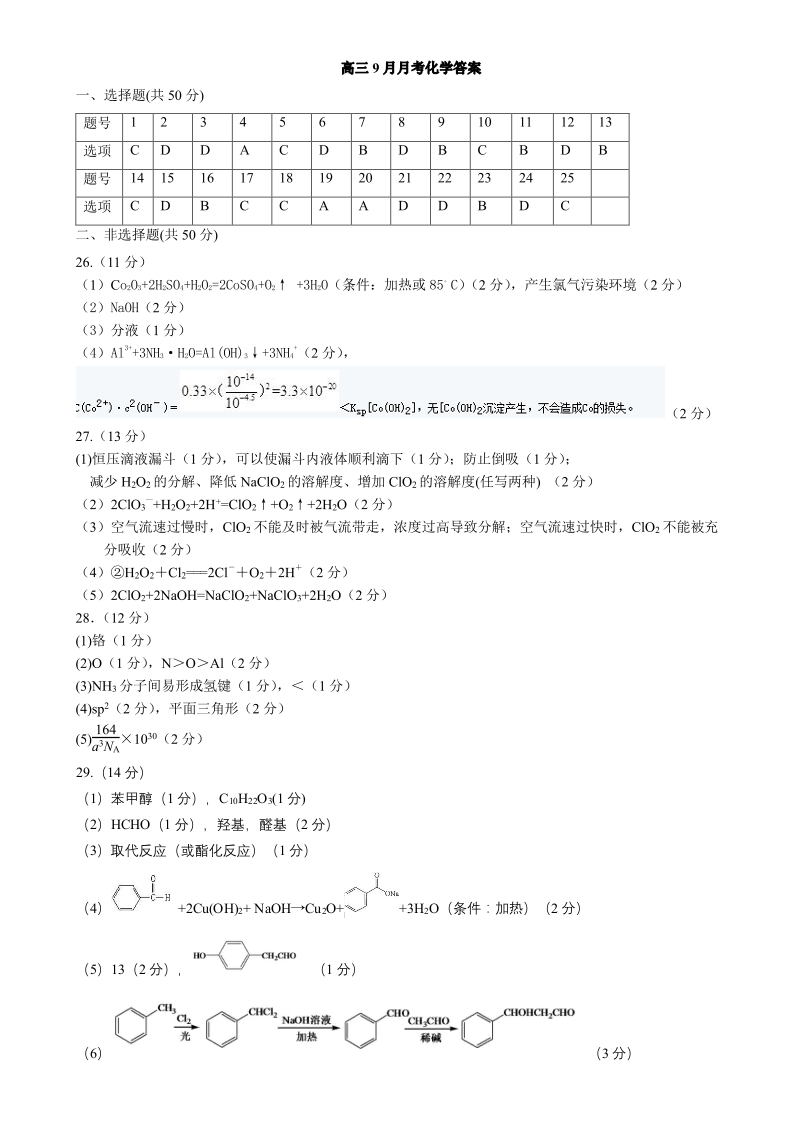 高三化学答案--黑龙江省哈尔滨师范大学附属中学2023高三9月月考