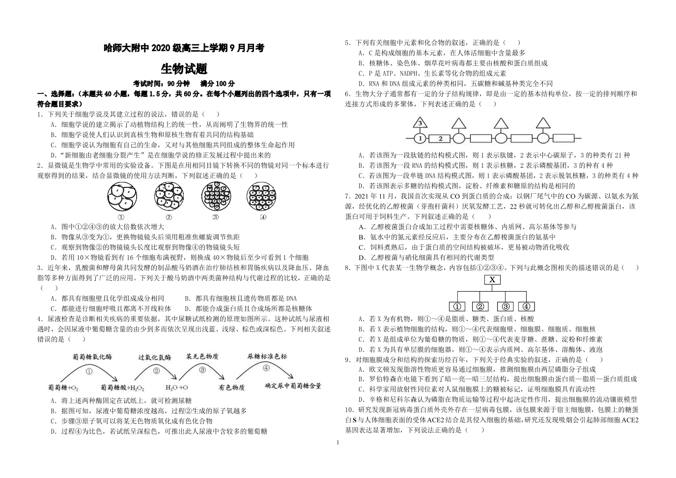 高三生物--黑龙江省哈尔滨师范大学附属中学2023高三9月月考