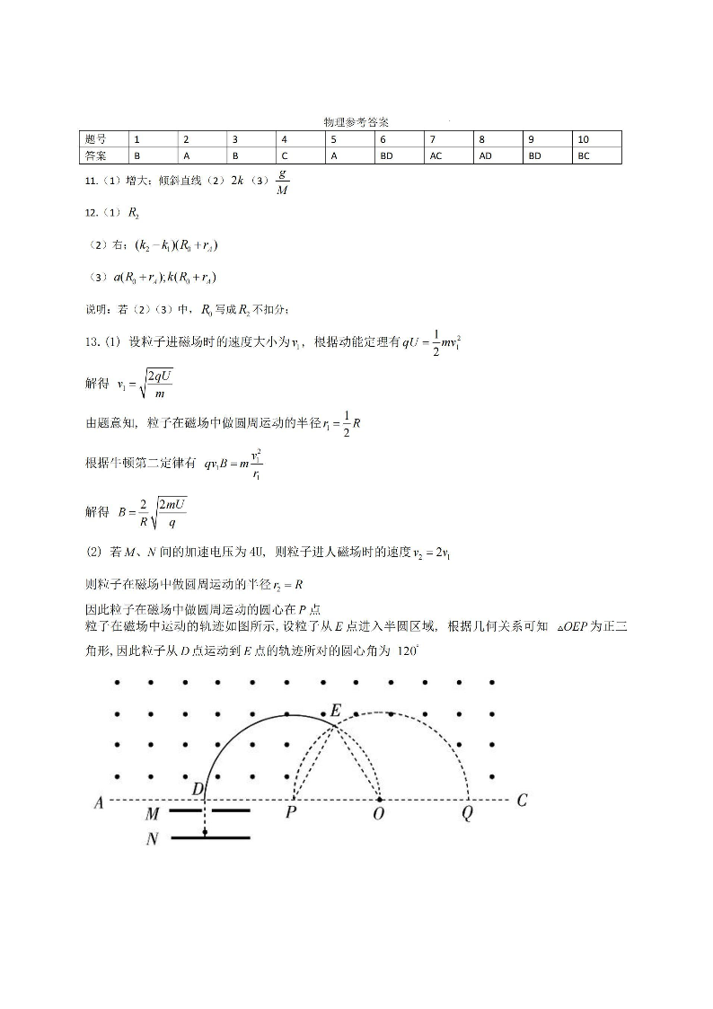 高三物理答案--河南省十所名校高中毕业班尖子生2023届上学期第一次考试