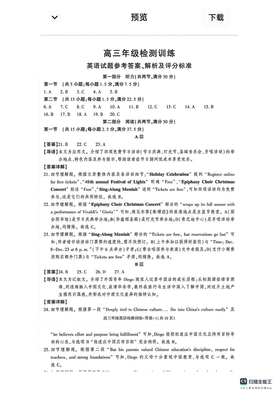 高三英语答案--陕西省榆林市2026届高三年级检测训练(榆林二模)