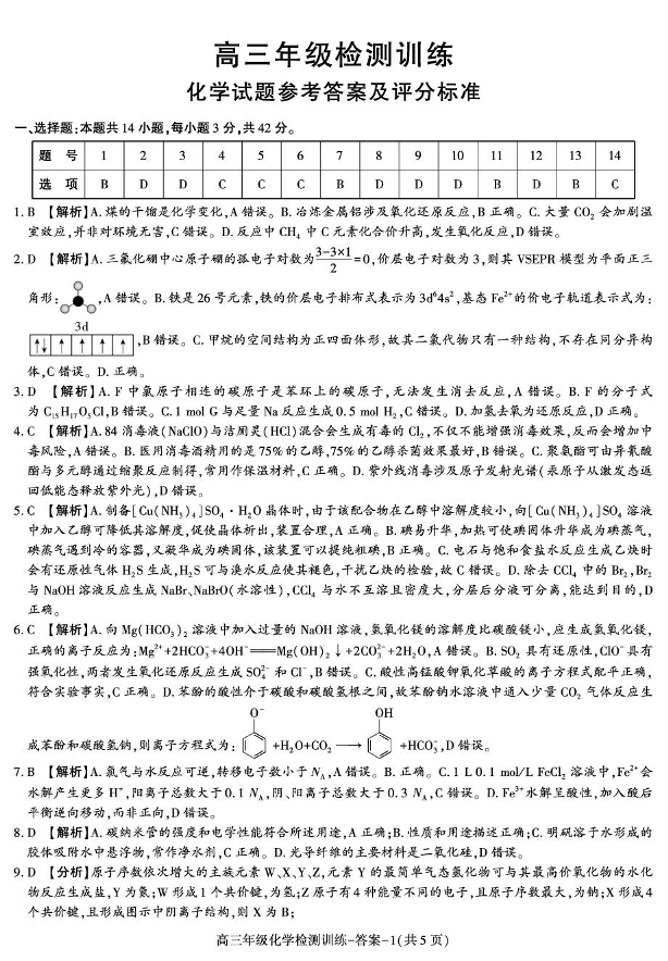 高三化学答案--陕西省榆林市2026届高三年级检测训练(榆林二模)