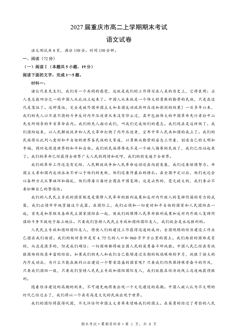 高二语文--重庆市2025-2026学年高二上康德1月期末考试