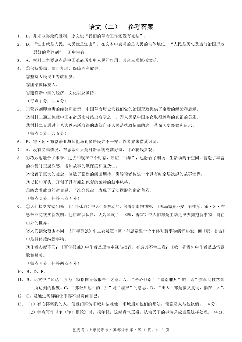 高二语文答案--重庆市2025-2026学年高二上康德1月期末考试