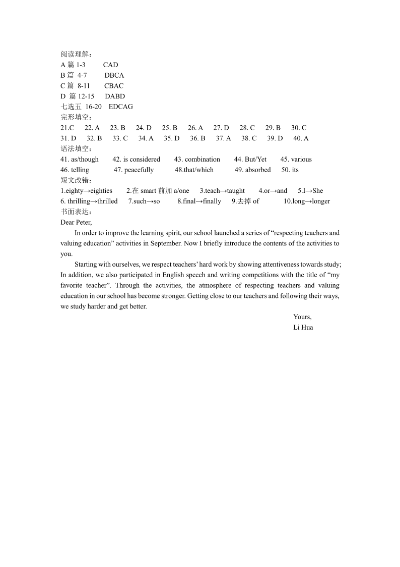 高三英语答案--甘肃省张掖市23届高三上学期第一次诊断考试