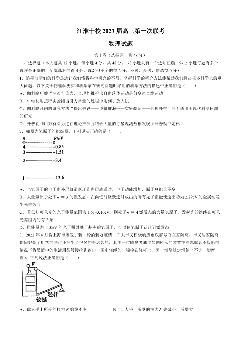 高三物理+答案--安徽省江淮十校2022-2023学年高三上学期第一次联考
