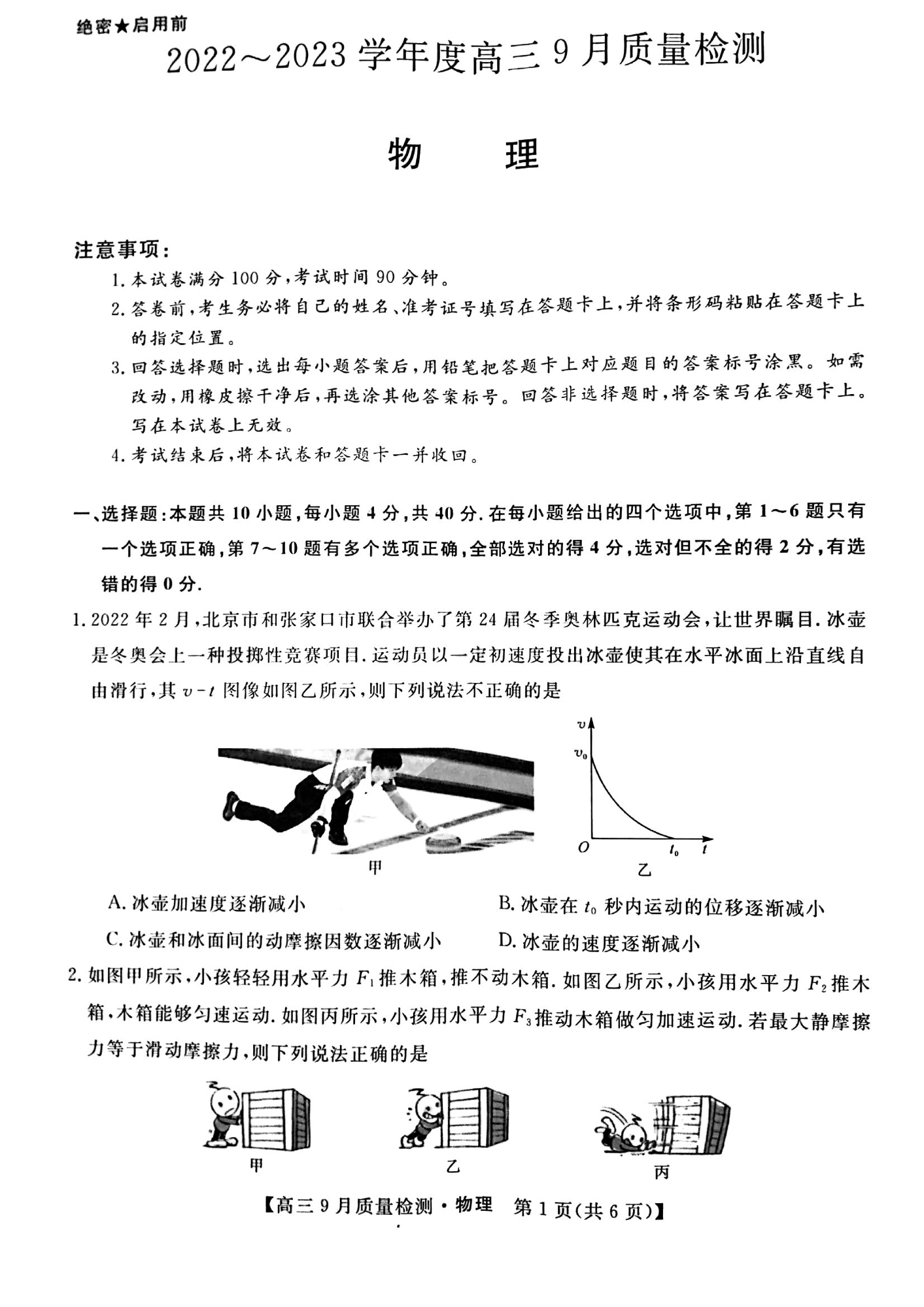 高三物理--金科大联考2022-2023学年度高三9月质量检测