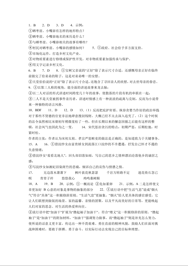 高一语文答案--宁夏回族自治区石嘴山市第一中学2025-2026学年高一上学期1月月考