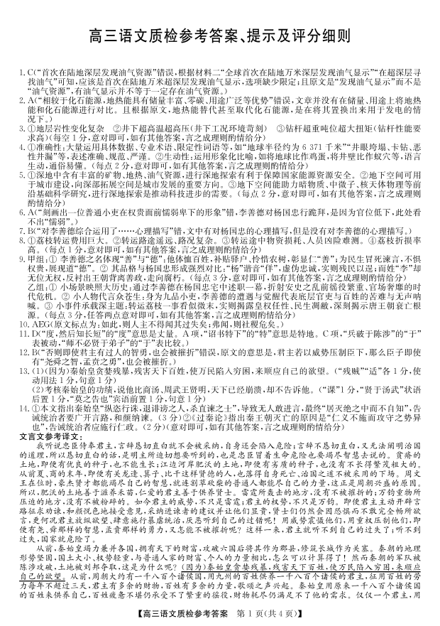 高三语文答案--广东省梅州市2026届高三上学期1月期末考试
