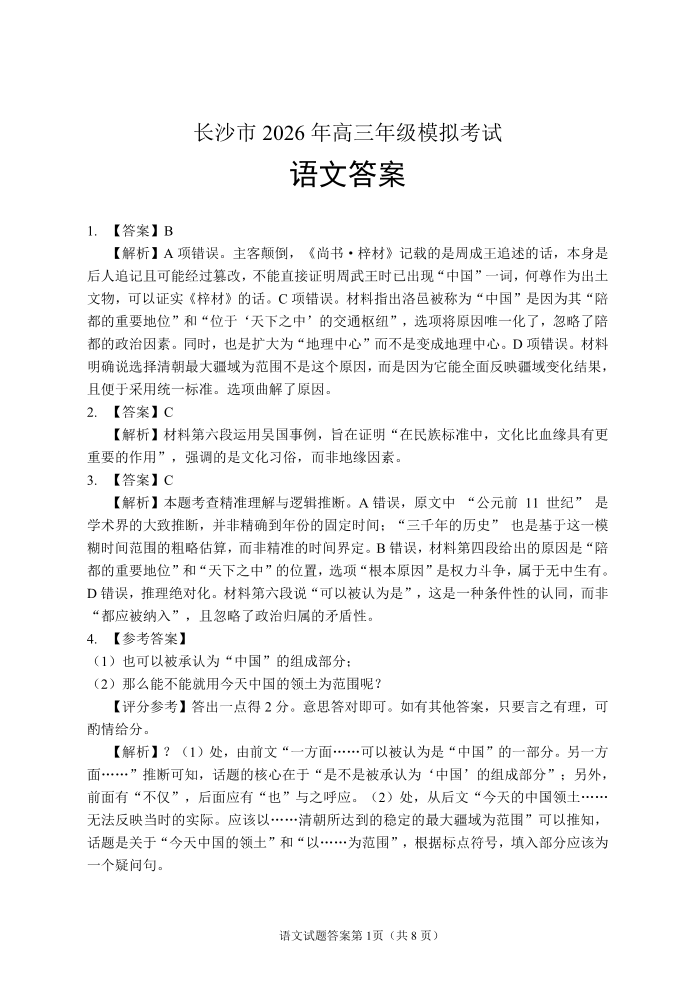 高三语文答案--湖南省长沙市2026届高三年级模拟考试(长沙一模)