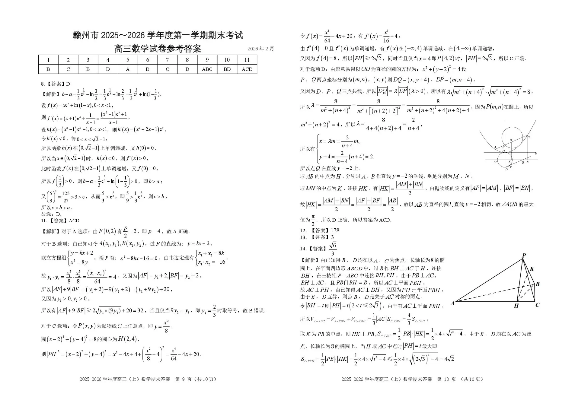 高三数学答案--江西省赣州市2026届第一学期高三上学期期末考试