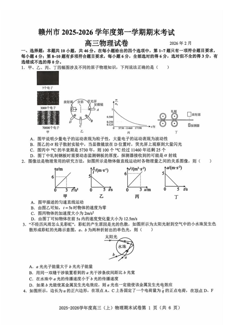 高三物理--江西省赣州市2026届第一学期高三上学期期末考试