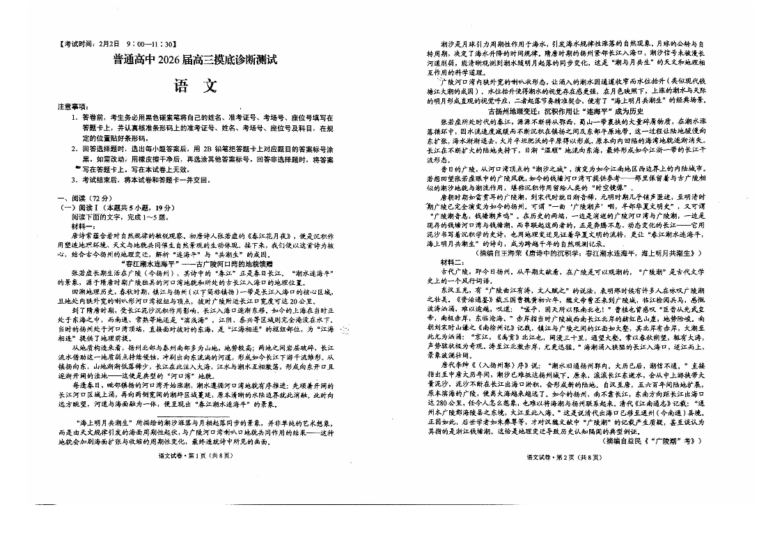 高三语文--云南省昆明市2026届高三上学期1月期末摸底诊断测试