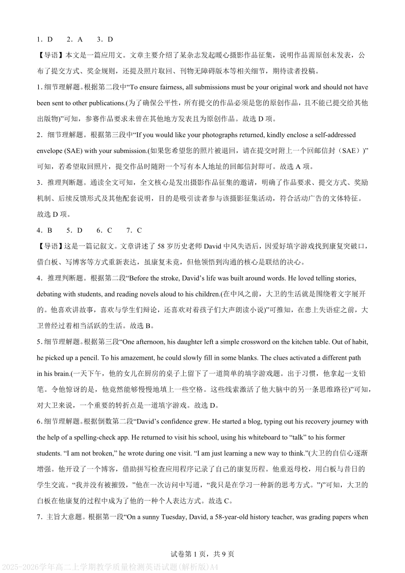 高二英语(解析版)--四川省德阳市2025-2026学年高二上学期期末考试