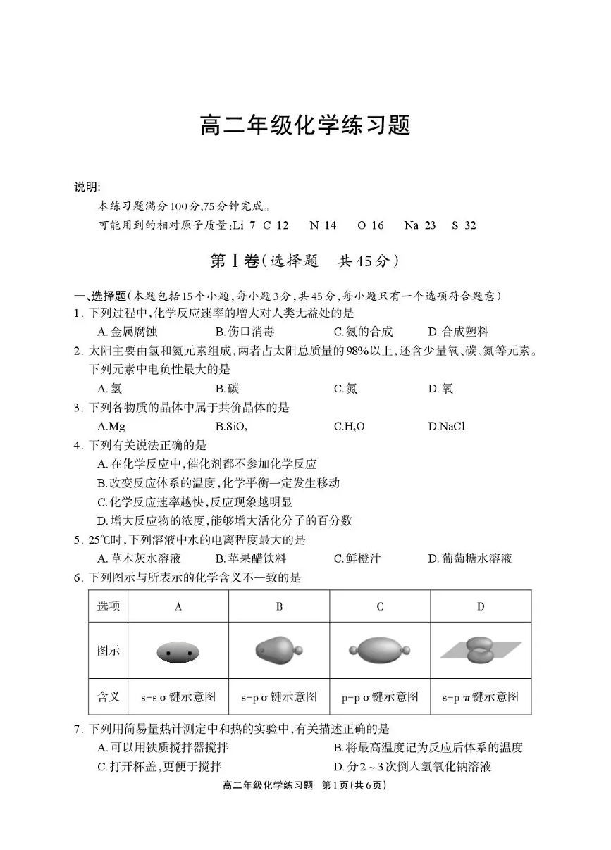 高二化学--四川省德阳市2025-2026学年高二上学期期末考试
