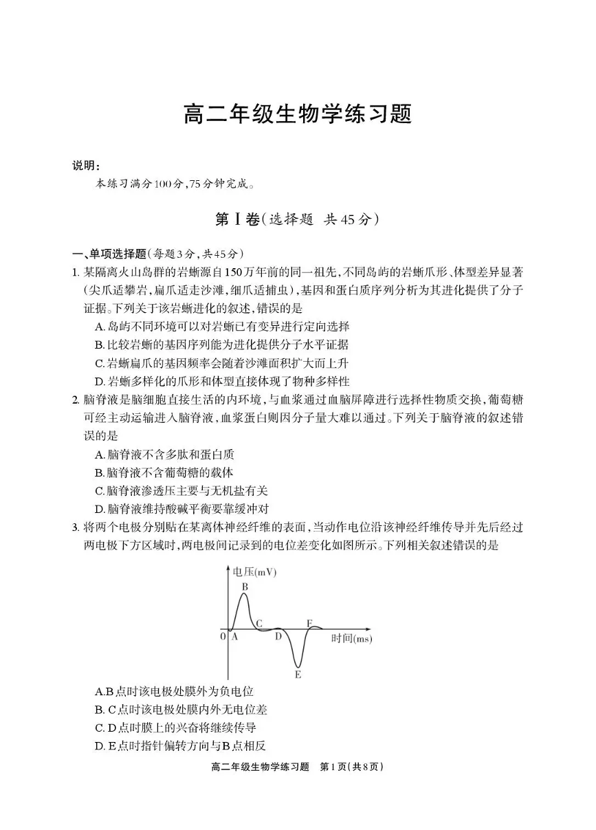 高二生物--四川省德阳市2025-2026学年高二上学期期末考试