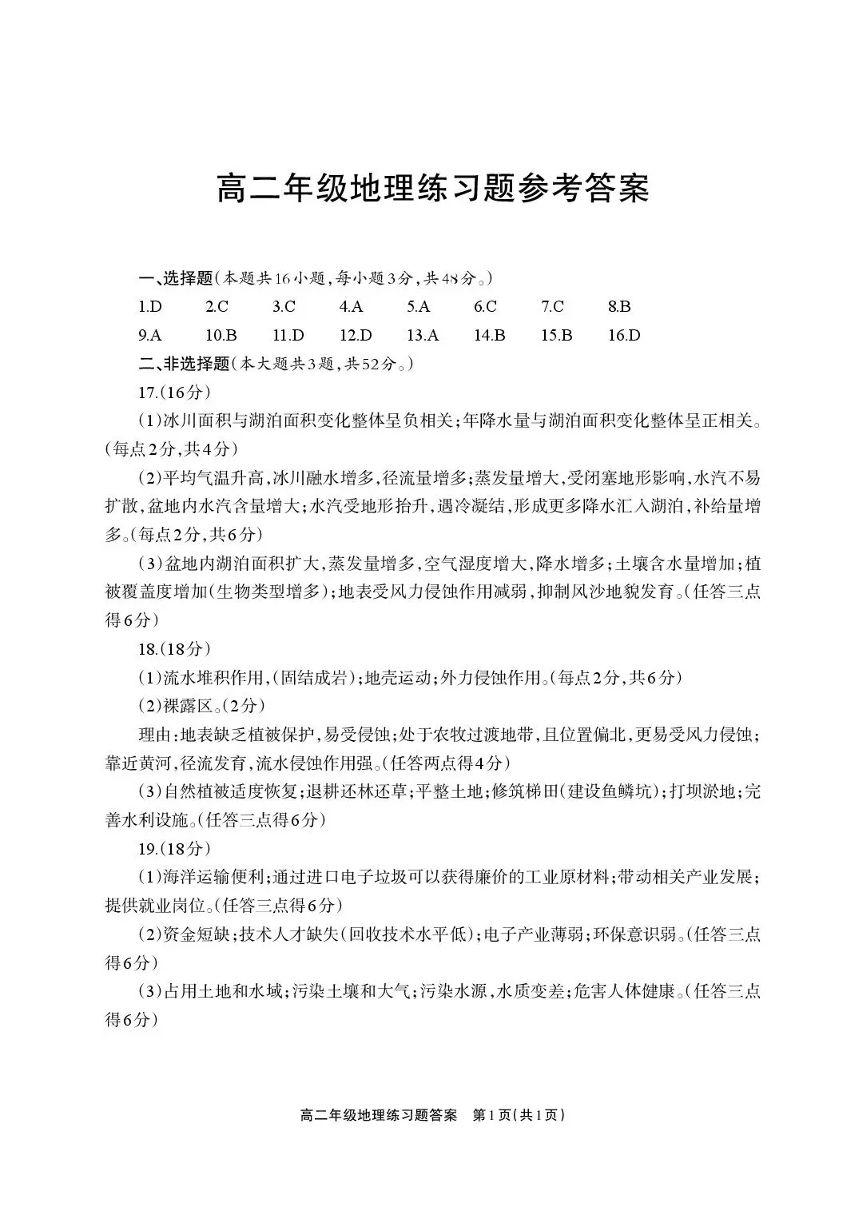 高二地理答案--四川省德阳市2025-2026学年高二上学期期末考试
