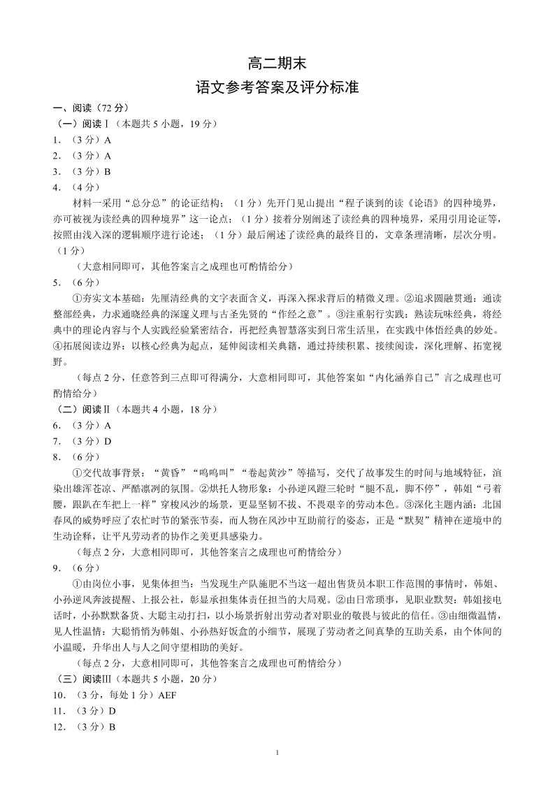 高二语文答案--四川省蓉城名校联盟2025-2026学年高二上学期期末考试