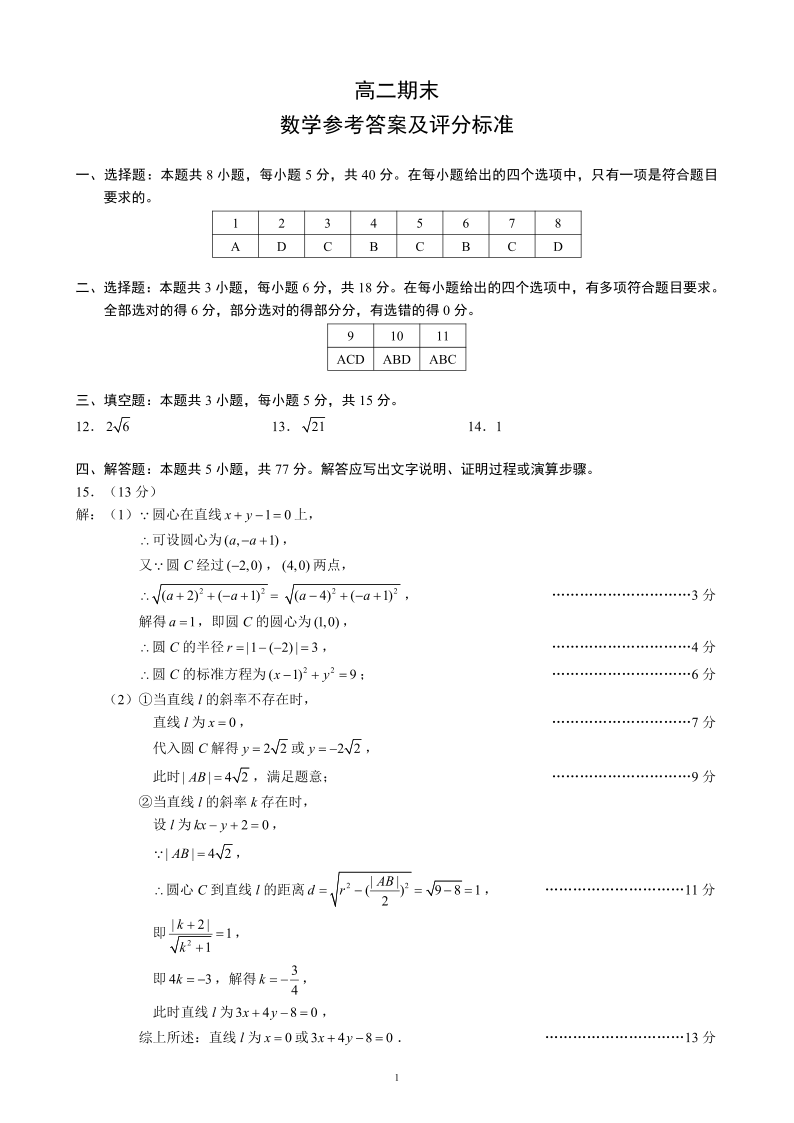 高二数学答案--四川省蓉城名校联盟2025-2026学年高二上学期期末考试