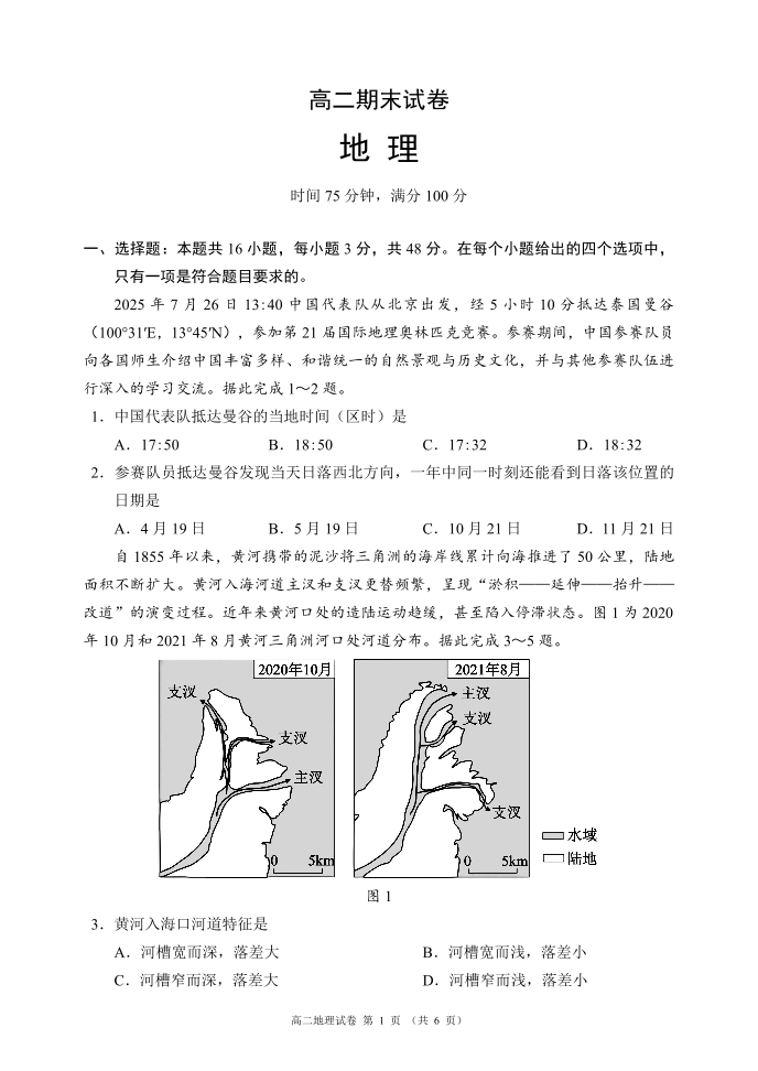高二地理--四川省蓉城名校联盟2025-2026学年高二上学期期末考试
