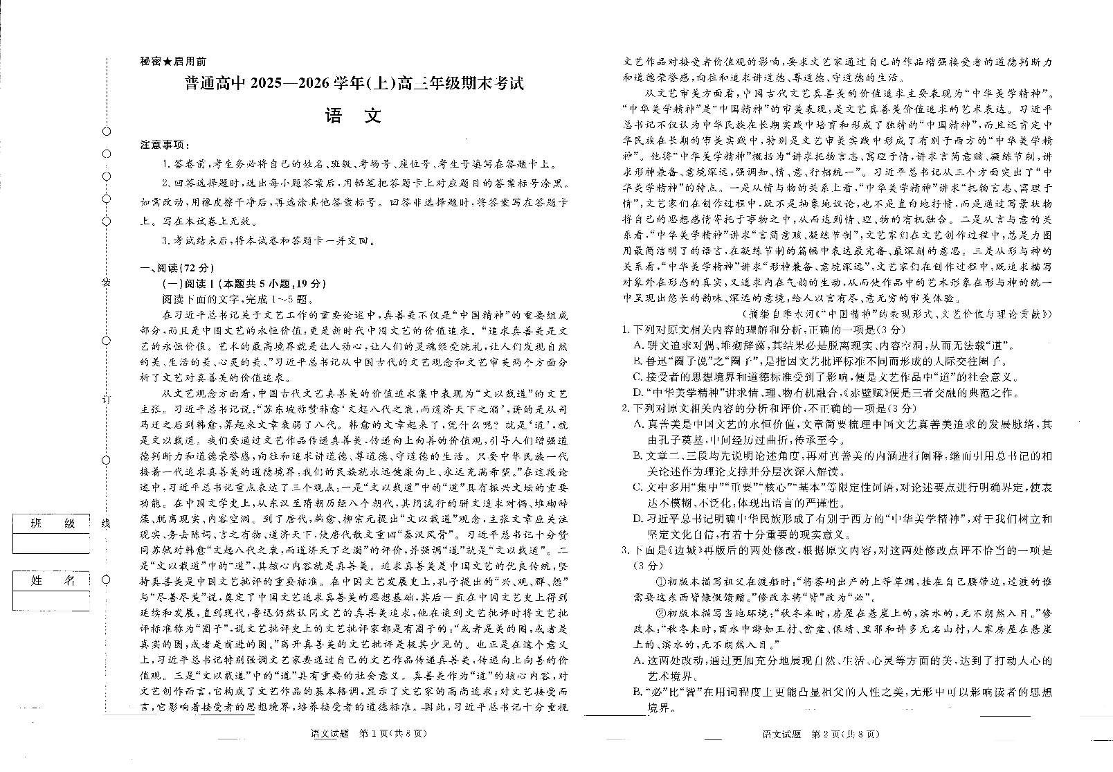 高三语文--河南省青桐鸣大联考普通高中2026届高三上学期期末考试