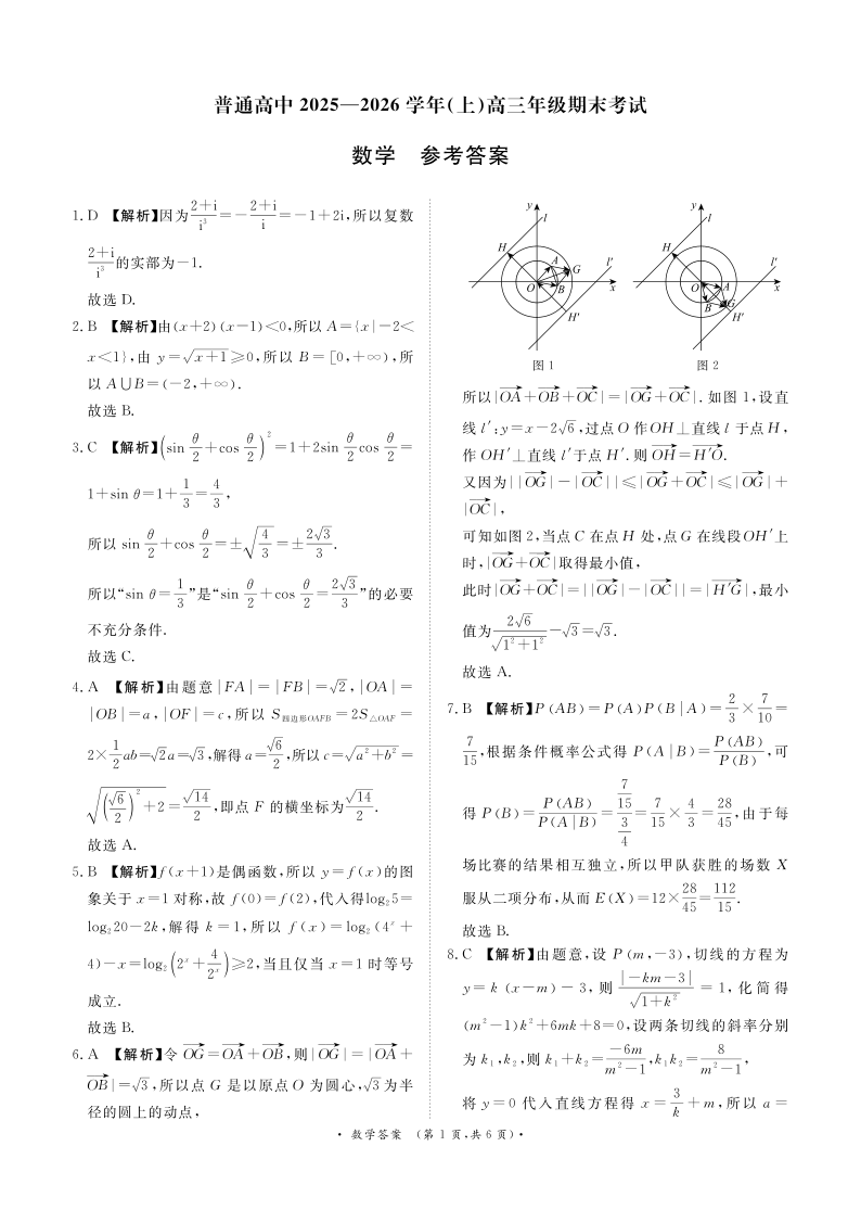 高三数学答案--河南省青桐鸣大联考普通高中2026届高三上学期期末考试