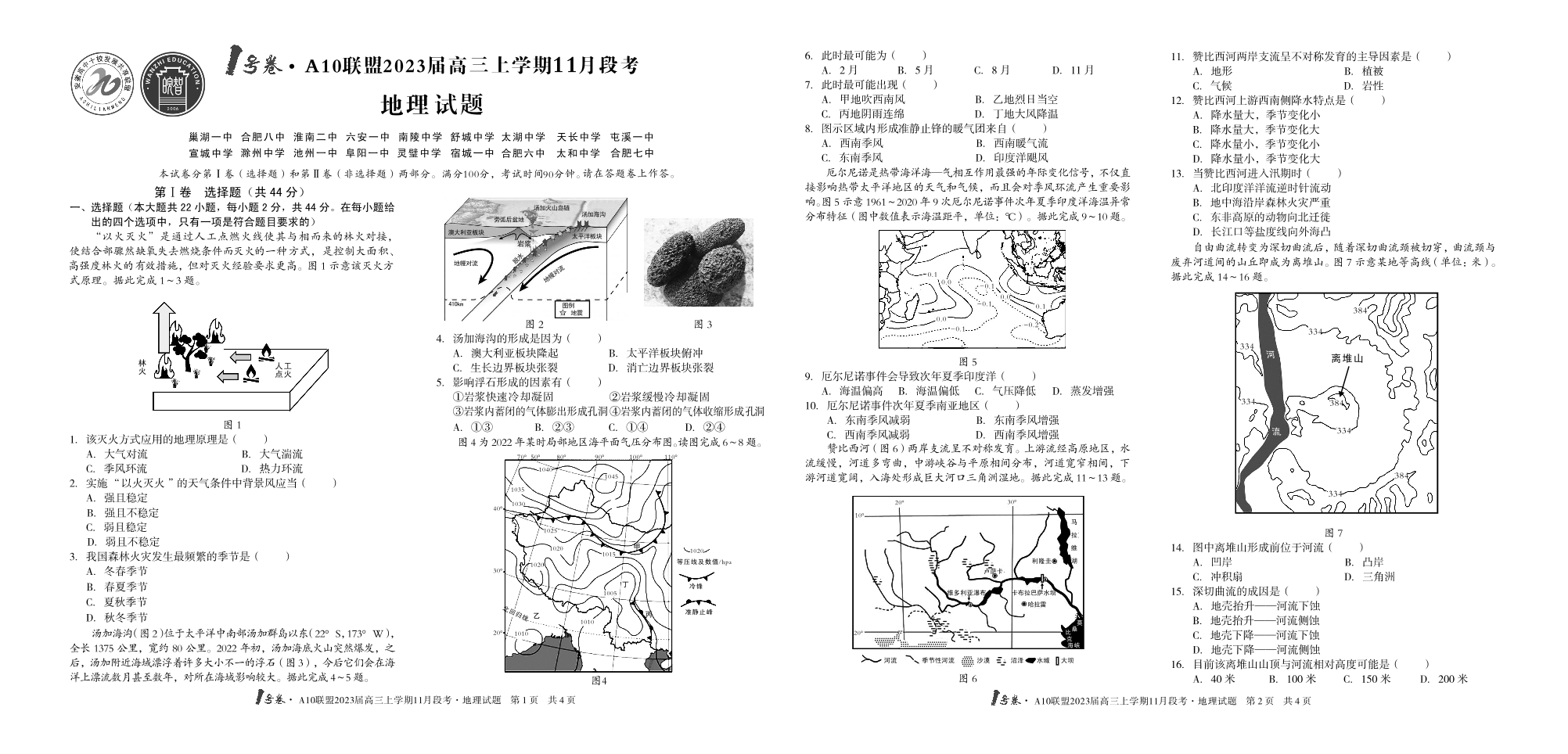 高三地理--安徽A10联盟2023届高三上学期11月段考
