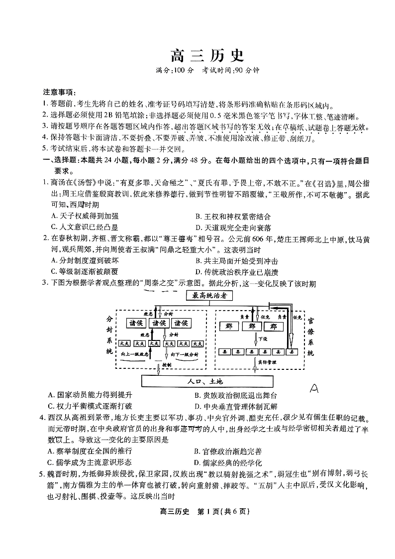 高三历史+答案--安徽2023届高三鼎尖名校联盟12月联考