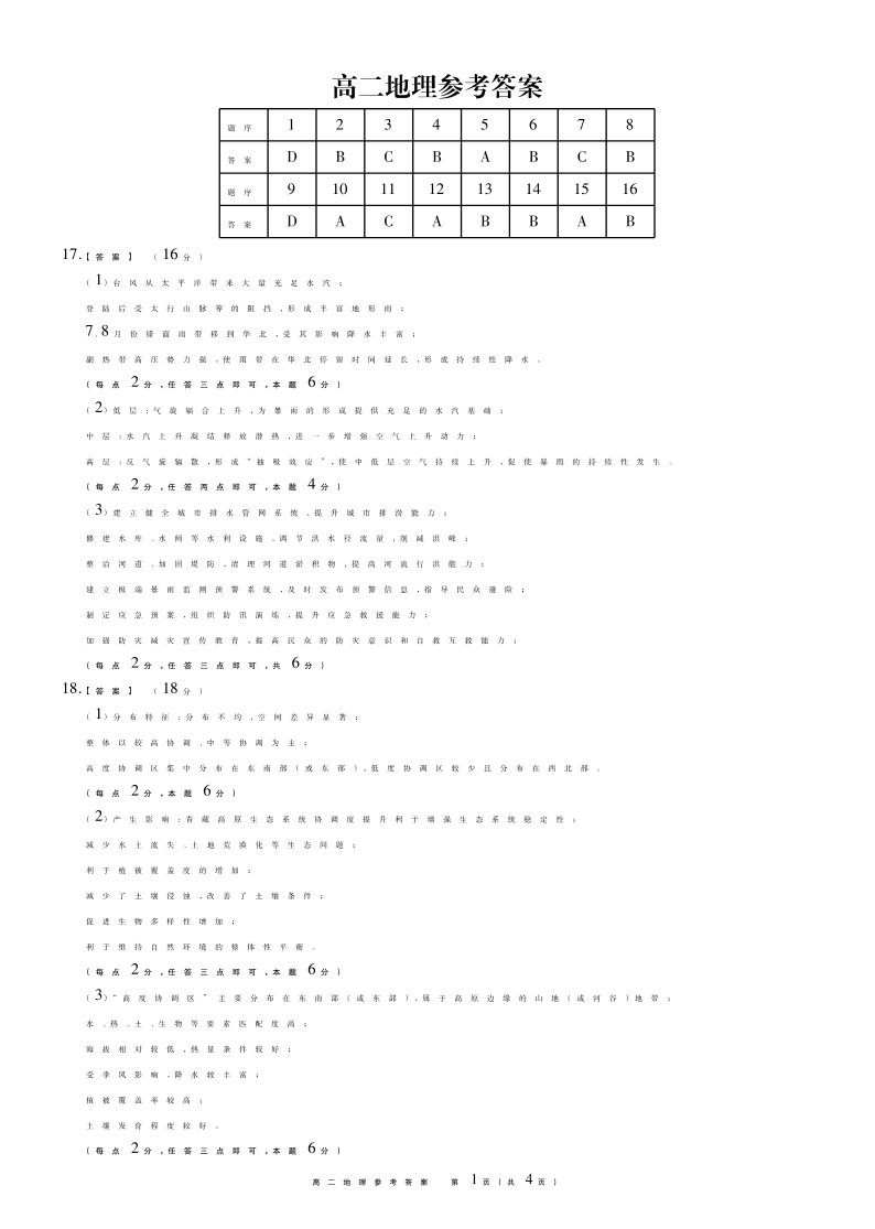 高二地理答案--安徽省鼎尖联考2025-2026学年高二上学期期末过程性学科素质评价
