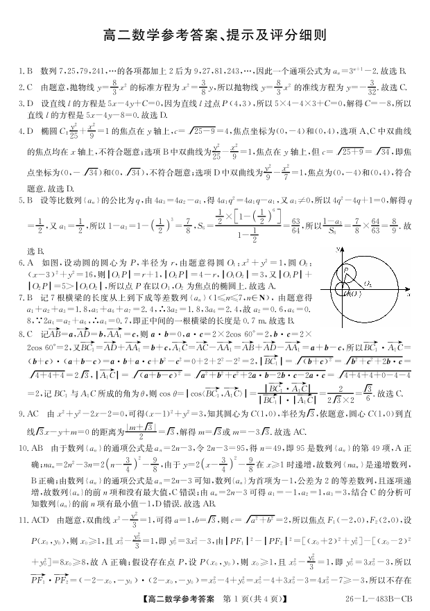 高二数学(CB)答案--安徽省江淮名校2025-2026学年高二上学期2月期末联考