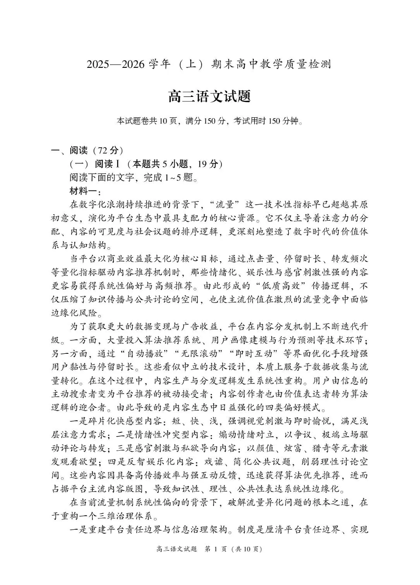 高三语文--福建省漳州市2026届高三上学期高中教学质量检测期末考试