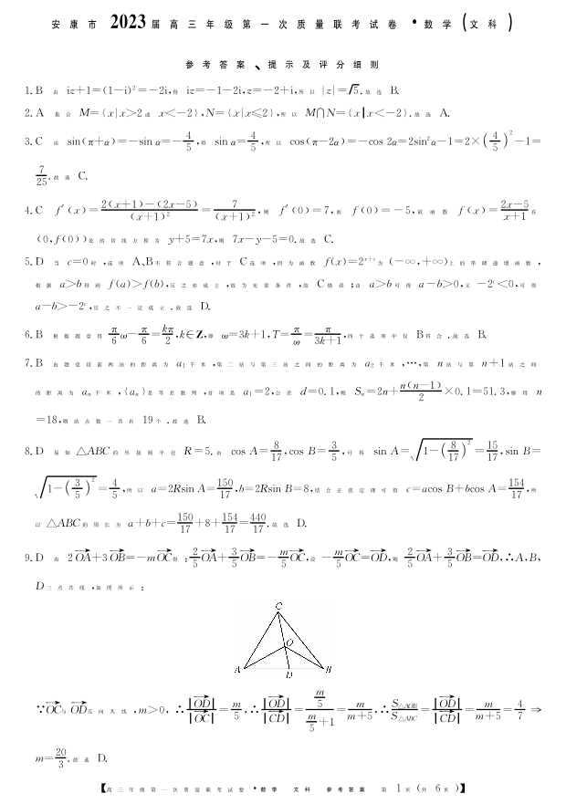 高三数学(文)答案--陕西省安康市2023届高三上学期第一次质量联考(一模)