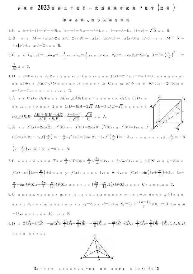 高三数学(理)答案--陕西省安康市2023届高三上学期第一次质量联考(一模)
