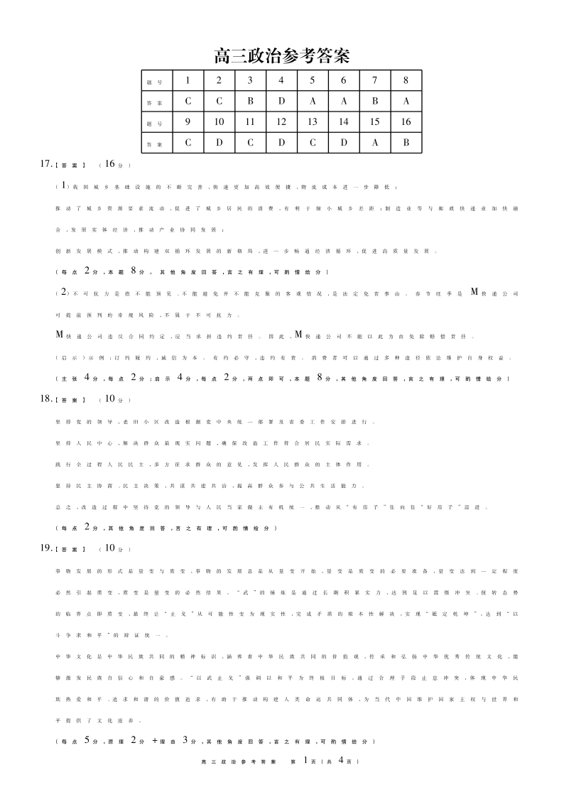 高三政治答案--安徽省鼎尖联考2026届高三上学期期末过程性学科素质评价
