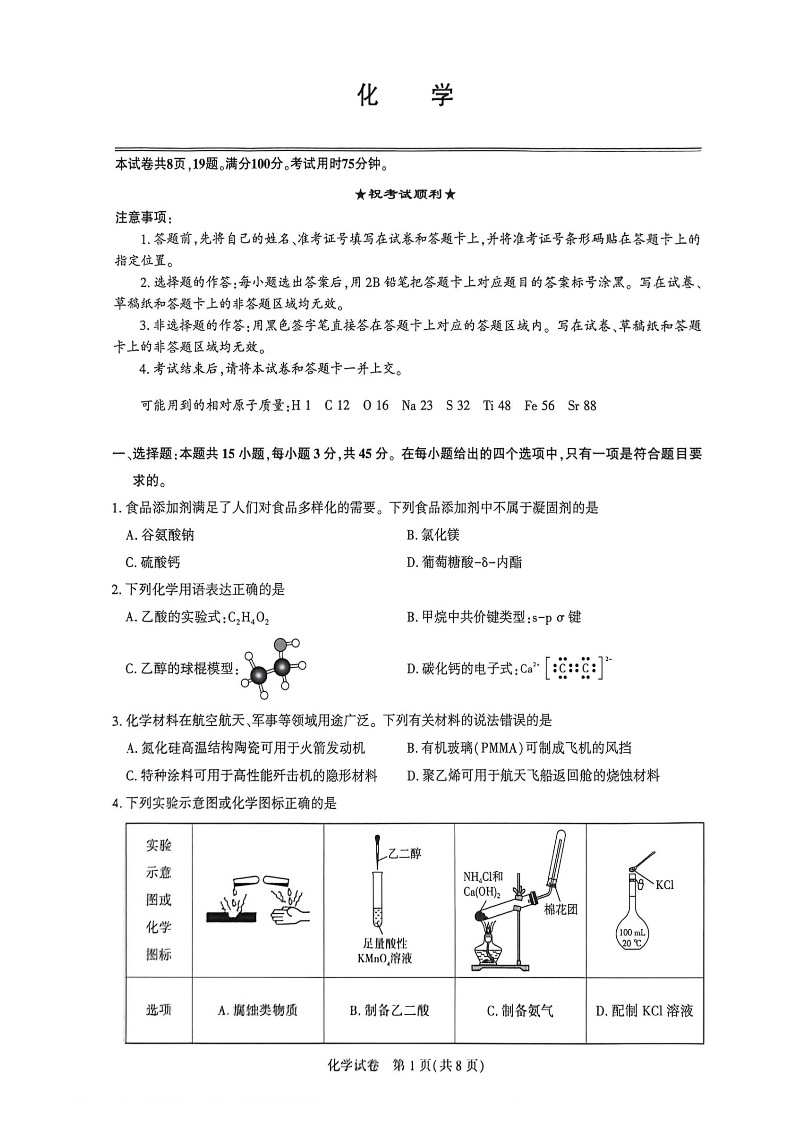 高三化学--湖北省2026届高三圆创联盟2月联考
