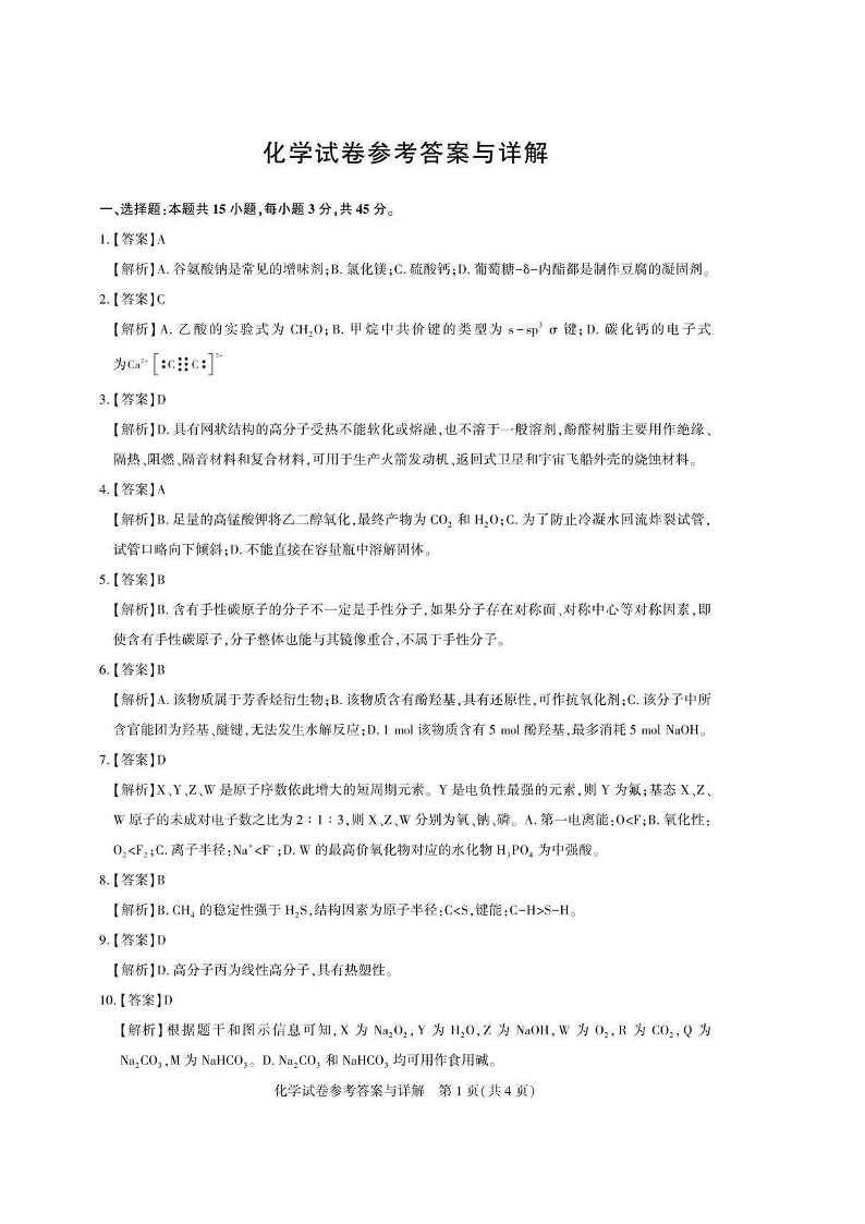 高三化学答案--湖北省2026届高三圆创联盟2月联考