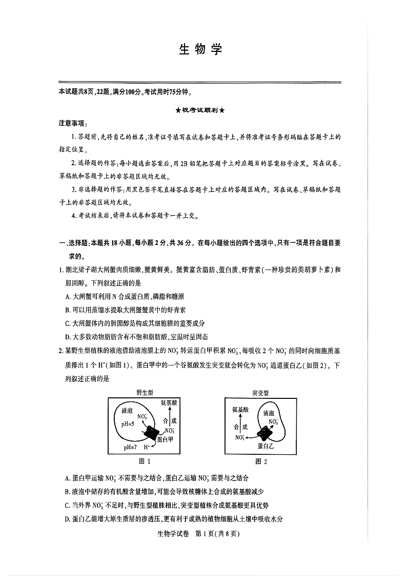 高三生物--湖北省2026届高三圆创联盟2月联考