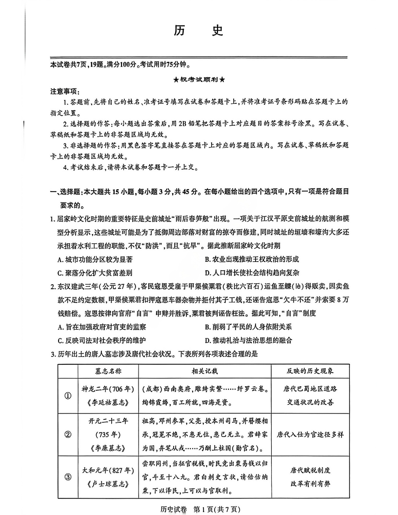 高三历史--湖北省2026届高三圆创联盟2月联考