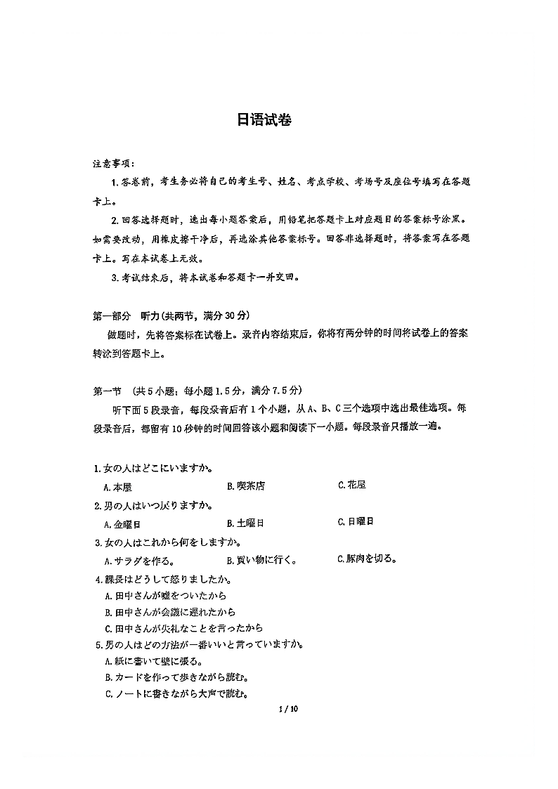 高三日语--湖北省2026届高三圆创联盟2月联考