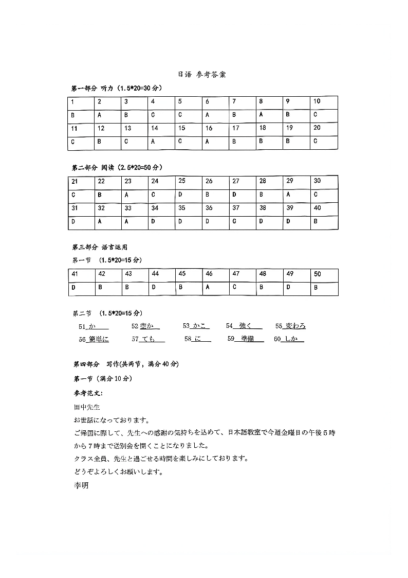 高三日语答案--湖北省2026届高三圆创联盟2月联考