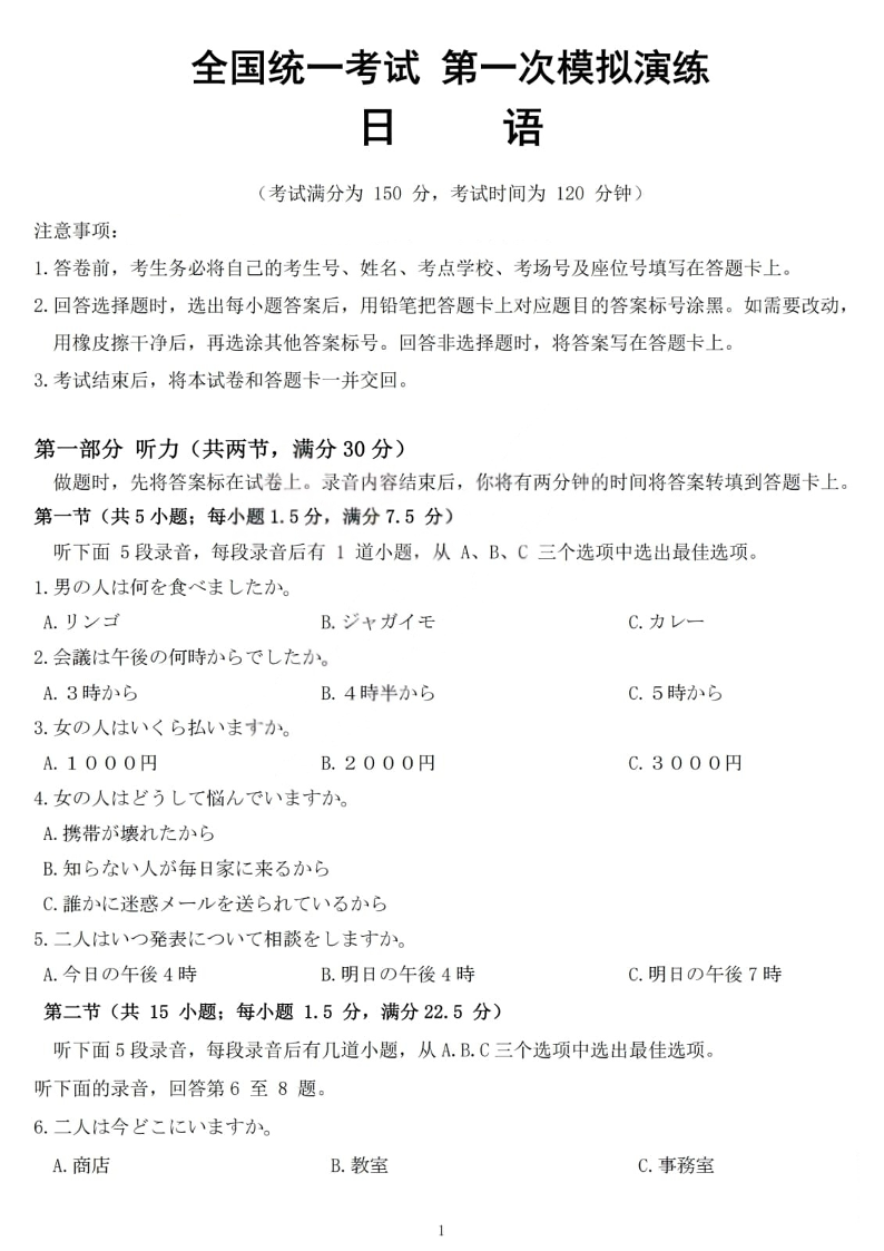 高三日语--山西省临汾市高三年级2026届度第一学期期末考试