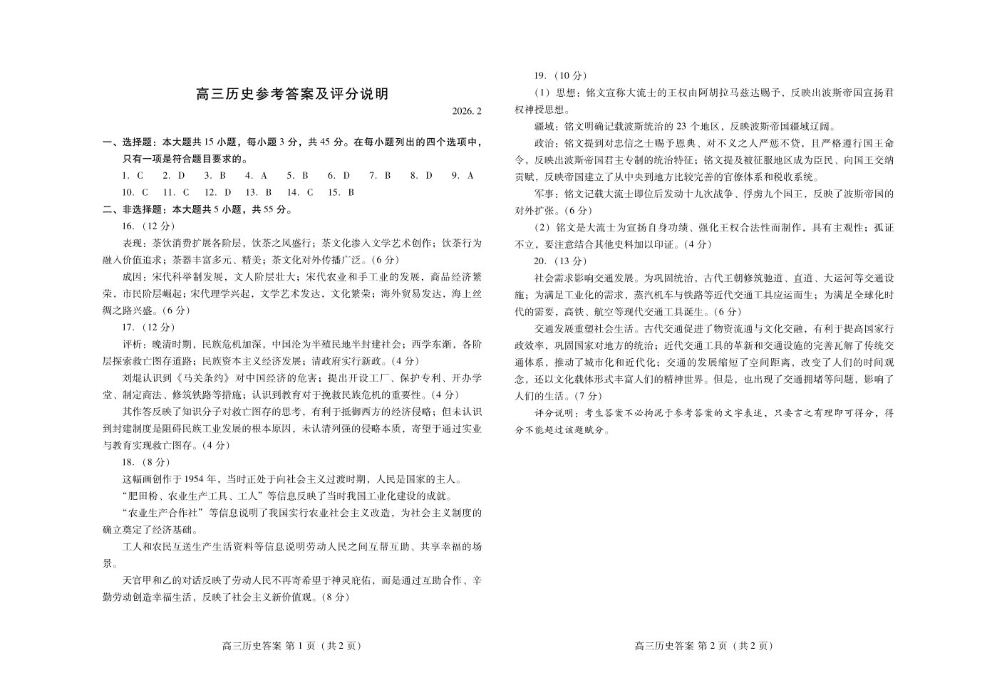 高三历史答案--山东省潍坊市2026.2高三模拟