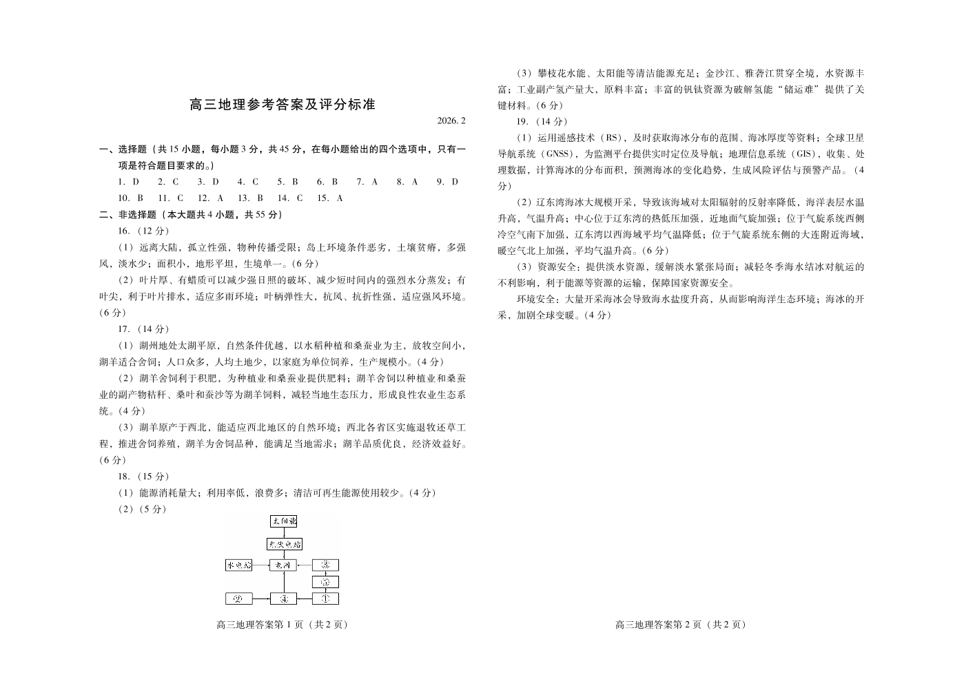 高三地理答案--山东省潍坊市2026.2高三模拟