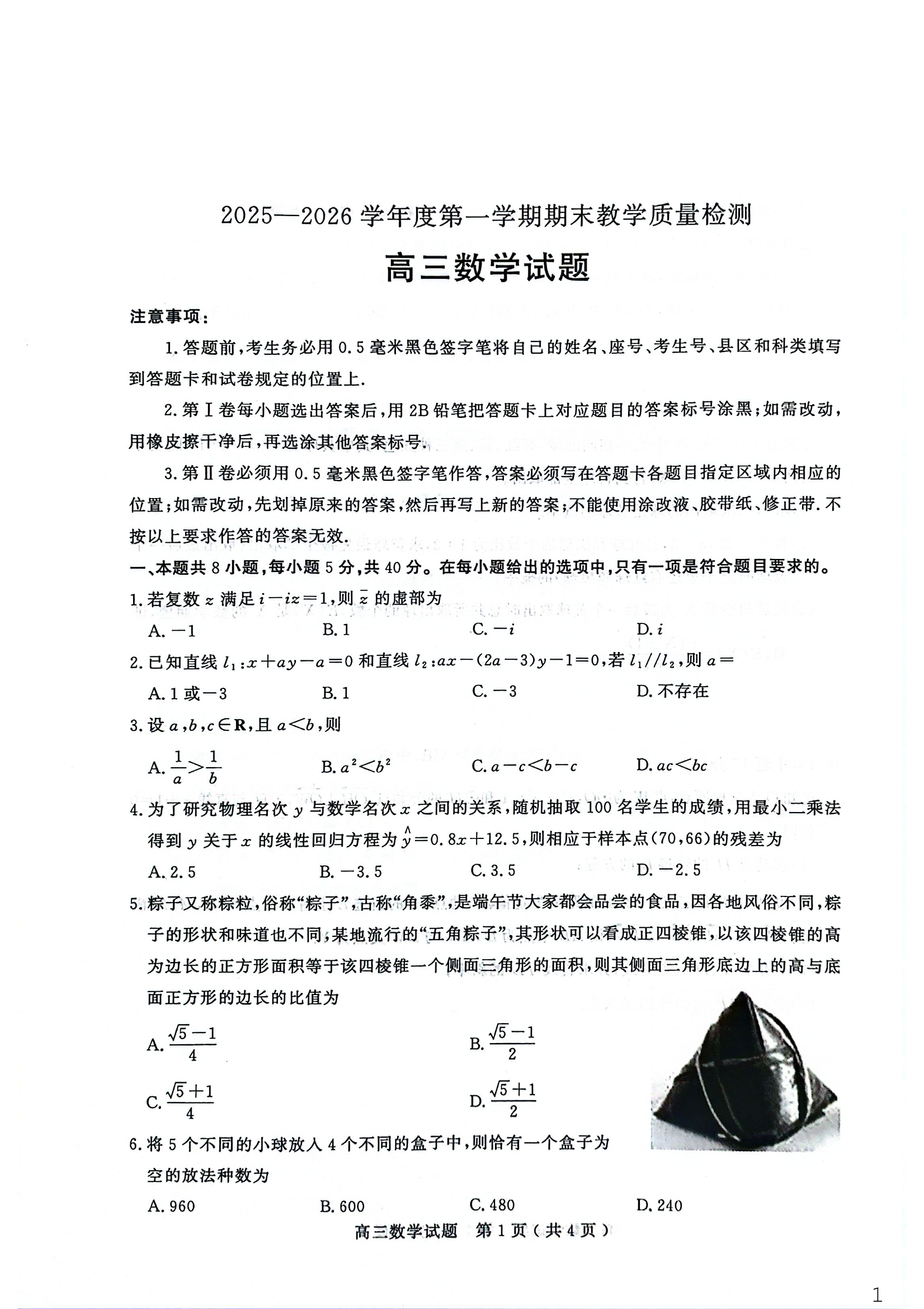 高三数学--山东省聊城市2026届高三上学期期末教学质量检测
